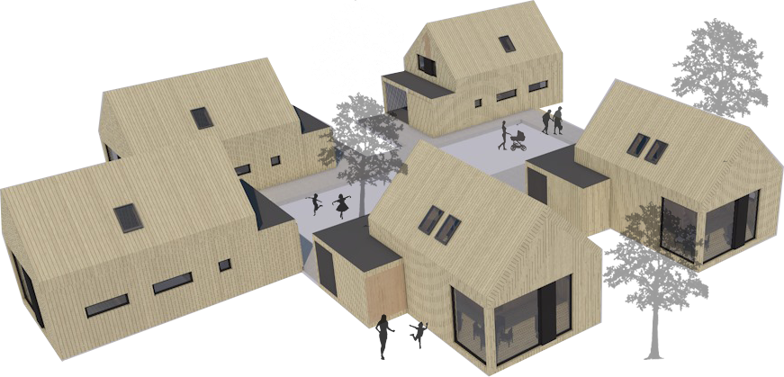 Modulbasert boligkonsept med boligmoduler i 3 ulike størrelser som kan bygges ut og settes sammen etter behov og livssituasjon.